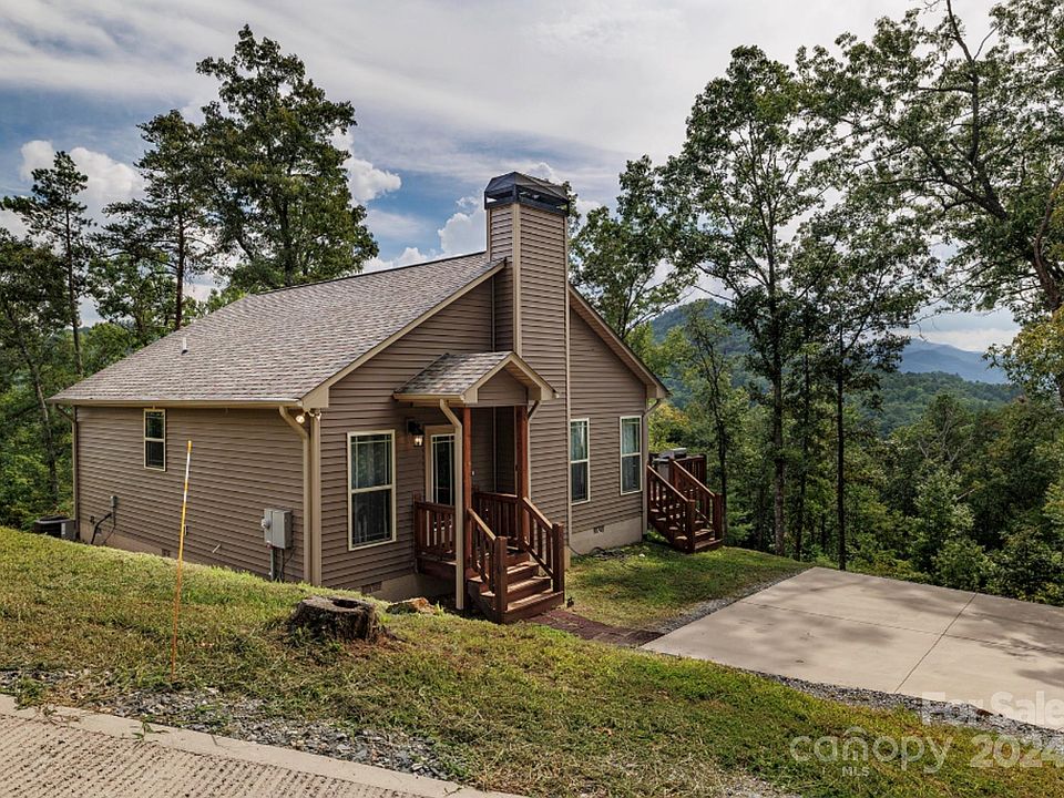 This charming home is a great opportunity if you're looking for a newer mountain home. Only 8 miles to downtown Bryson City, this home is located in Fontana Lake Properties with paved access to the front door. End of the road privacy & amazing sunset & lake views year-round. You can hear Alarka Creek flowing below from the porch. Development has Fontana Lake access for property owners. The open concept home has a large front room open to the kitchen & a beautiful stone wood burning fireplace. Granite countertops, stainless steel appliances, kitchen island & large hot water heater in pantry. Master bedroom is spacious with 2 walk-in closets, lots of windows to show the view, ceiling fan & French doors that open onto the back covered porch. Covered porch has been reinforced and wired for a hot tub. Close to mountain biking, hiking, trout fishing & so much more! This home makes a great rental or personal getaway, especially with the views and solitude like this one has to offer.