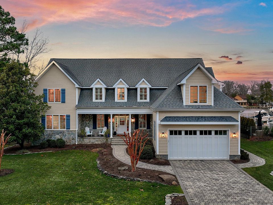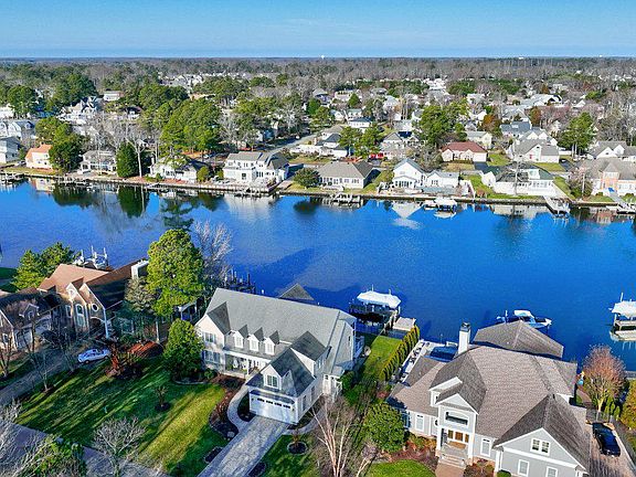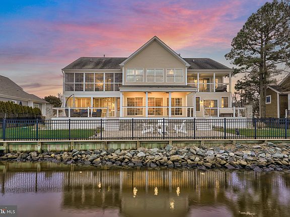 Welcome to 109 Blackpool Road, a beautiful home nestled in the coveted Rehoboth Beach Yacht and Country Club community! Blending the perfect balance of comfort and coastal elegance, this 4,350+ sq. ft, 5 bedroom, 4.5 bath property was thoughtfully crafted to take full advantage of spectacular water views at every turn. Situated on the peaceful Bald Eagle Lagoon, curb appeal abounds with a handsome paver driveway, mature landscaping, shaker style siding, and a welcoming covered front porch. The backyard oasis is truly captivating! Imagine navigating your boat up to your private pier complete with a Pontoon lift, PWC lift, and a floating dock to accommodate two personal watercraft. This charming home has many seller add-ons including the beautiful wrap-around composite deck adorned with modern cable railings, a protective overhang for shade, and a quaint paver patio with a firepit. The new black rod iron fence offers both an aesthetic appeal but also a safe space for furry friends. With easy access to Rehoboth Bay this location offers an idyllic setting for boating trips, kayaking, and crabbing, and fun filled summer days on the water are just ahead! Inside this exceptional home you will find two levels of robust living space highlighted by beautiful hardwood floors, shiplap millwork, plantation shutters, new stylish lighting fixtures, and a pleasing color palette that carries throughout. The open concept layout unfolds providing endless entertainment opportunities between the kitchen, dining areas, living room and two-story great room complete with a cozy gas fireplace The bright and airy interior is enhanced by expansive windows and glass sliding doors allowing natural light to fill the living space. If you enjoy cooking you will love the spacious gourmet kitchen featuring a 6-burner gas range with a new range hood, high-end stainless steel GE Profile appliances, two ovens and a built-in microwave, a deep walk-in pantry, plenty of counter space, 42” updated white cabinetry with pull-out shelving, sleek granite counters, a stylish backsplash, and a convenient breakfast bar. Just off the kitchen is a spacious laundry center with storage cabinets and sink, and a powder bath. Sleeping quarters start on the main level with a waterfront primary bedroom providing a private retreat with access to the wrap-around deck, two walk-in closets, a spacious updated luxury bath with a stall shower, soaking tub, two separate vanities and a private water closet. Travel upstairs to 1900 additional sq. feet of living space encompassing four graciously sized bedrooms. Two of the guest suites have ensuites and feature private decks with waterfront vistas. Additional upgrades to this meticulously maintained home include a new irrigation system, extensive exterior landscape lighting, new roofing and gutters on the back deck area, a concrete slab added to the crawl space, and new dock boards. This home is also equipped with electronic smart door locks, a smart thermostat, Ring doorbell, security system and surround sound. Being a resident of the Rehoboth Beach Yacht and Country Club affords you easy access to Route 1 and is central to shopping, dining, entertainment venues and just minutes from downtown Rehoboth and Dewey Beach. Come, see, and explore all that this beautiful home has to offer and start making some special memories of your own! Remember, living on the water is not just a location, but a Lifestyle!!!