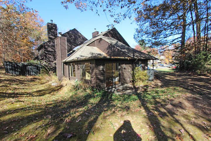 ONE LEVEL end unit townhouse home with no exterior maintenance. Open great room with dining area, wood floors, vaulted ceiling, skylights; 2 bedrooms; 2 full baths;first floor master-suite with huge walk in closet with wood floors; large sun room with tile floors; off street parking; low traffic cul de sac; short drive to and near everything