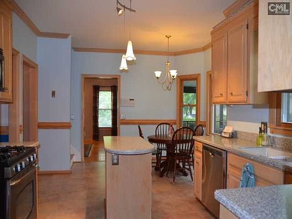 - Kitchen: Eat In, Counter Tops-Solid Surfac, Island, Cabinets-Natural, Floors-Laminate