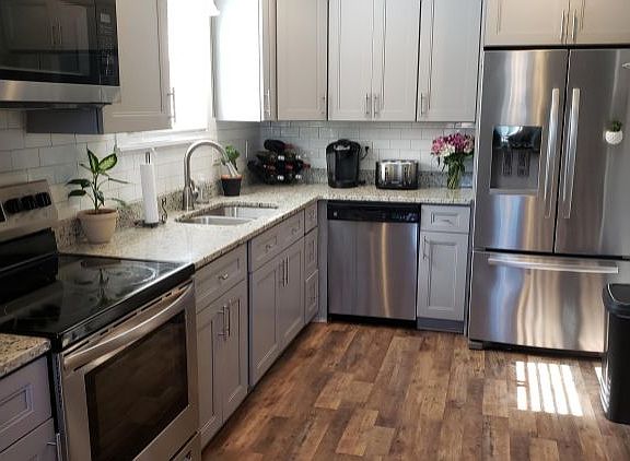 Welcome to this adorable home that has been completely remodeled and is move in ready for a new family! Walking in, you feel welcomed by the open floor plan with living dining space and a wood burning fire place w new vinyl floors. The kitchen has beautiful cabinetry and beautiful granite countertops is off to the side, making it a perfect space for the family or entertaining! The bedrooms are all in the rear of the home, the two guests rooms sharing a full bath, and the sizable master with its own spa-like suite. Both bathrooms have beautiful tile floors and surrounds bath and matching granite counter tops. Separate laundry storage room and private back yard with 6ft wood fence for to complete the package. Don't let this one slip away won't last long!!!!