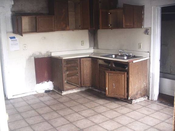 Exterior Features: Exterior: Home's exterior looks to be in overall fair condition. Siding: Grayish blue siding, in fair shape. Windows: Intact. Soffits and Eaves: Intact. Patio/Porch: Small wooden porch at front of home, could use some work. Roof: Unknown. Driveway: None. Garage: None. Interior Features: Interior: Home's interior is in overall poor condition, looks to have at least smoke damage throughout the home, although there are no signs of burning anywhere. Living Room: In poor condition, walls are blackened from smoke. Dining Room: Same condition as the living room. Kitchen: Complete with cabinets, counter-tops, and sink, doesn't seem to be much evidence of smoke damage in this room. Bathroom: Poor condition. Bedroom: All three bedrooms have blackened walls from smoke damage and are in overall poor condition. Basement: Dirt floors and stone walls. Mechanics: Hot water heater intact, all others unknown.