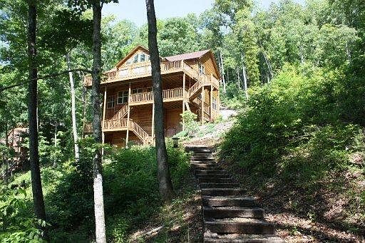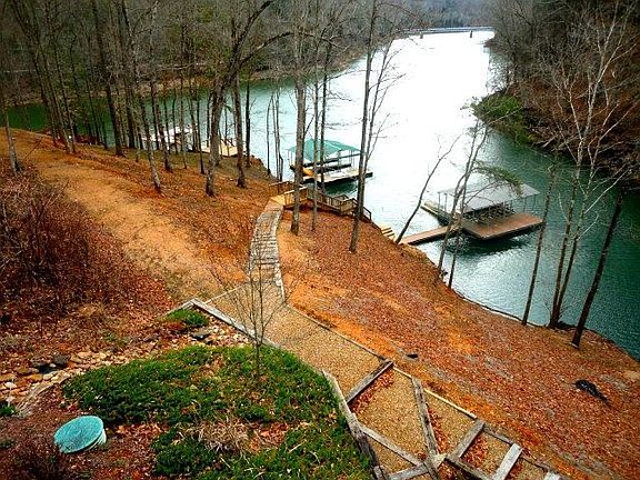 Custom built lakefront Chalet with gentle slope down to your covered boat dock with swim platform. This 5 bedroom/3 & half bath features an open floor plan, 2 luxury mstr suites, cathedral ceilings,granite counter,stone fireplace,decks on every level, hot tub, open water channel and jumping bridge view, additional bdrms possible, rough in for 2nd kit. Top quality amenities thru-out! Gated Community with pool, boat ramp, trailer storage. Great investment property. Home looks like new because it has never been rented but it has great rental potential.