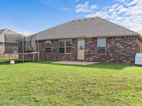 Come and see what this practically new home built in 2023 has to offer! Nestled in the coveted Sunset Estates in the heart of Pocola, you are just minutes away from shopping and schools and under 10 minutes from Fort Smith. A charming front porch beckons you inside where you are greeted by a large open living area and an eat in kitchen with a bar for additional seating. 10 foot ceilings add to the open feel. This thoughtful split floor plan home combines comfort and convenience and is ideal for entertaining or relaxing evenings at home. Granite countertops flow through the Kitchen and bathrooms and the master features a tray ceiling adding to the elegance of this space. The backyard is fenced and the front yard is landscaped beautifully. This home has had one owner, has been lovingly cared for and is ready for you to move in and call it your own. Don't miss out! Call for your private showing today.