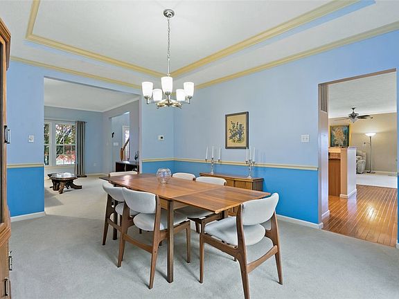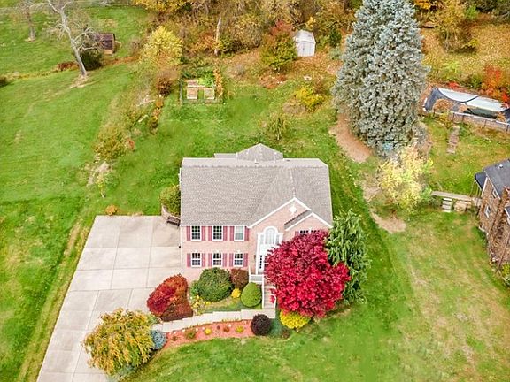 PRETTY AS A PICTURE! This BRICK home offers a SPACIOUS, OPEN floor plan and a nice REAR YARD! Welcoming TWO-STORY entry with HARDWOOD flooring* Living room with CROWN MOLDING opens to dining room with TRAY ceiling, crown and chair rails* Kitchen is a COOK'S DELIGHT with abundant CHERRY CABINETRY, GRANITE COUNTER TOP SPACE (2016), STAINLESS APPLIANCES (2016) and a pantry* First floor laundry * Kitchen OPENS to large family room with fireplace* LUXURY Owner's Suite with TWO WALK-IN CLOSETS and UPDATED BATH (2019) with jet tub, tile shower* Three-season room to enjoy the outdoors without the rain and bugs! Finished gameroom with full bath* Newer ROOF (2018), AIR CONDITIONER (July 2022), storm doors (2020)* Invisible dog fence* Double-wide driveway provides extra parking**WALK TO TRAIL!