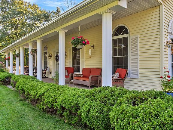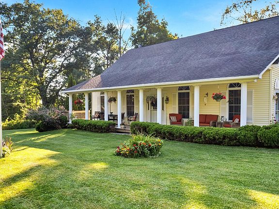 This stunning contemporary style split-level home is conveniently located on Bull Hill Rd, yet tucked back on ¾ of an acre with mature landscaping which offers the perfect amount of privacy. Upon entering, the main level greets you with an open living area, where vaulted ceilings and gleaming hardwood floors create a spacious and inviting atmosphere. The kitchen is a chef's dream, equipped with stainless steel appliances, granite countertops, and ample cabinet space. Just off the kitchen, the open floor plan includes a dining room and living room with French doors to the backyard yard and a covered wrap-around porch, ideal for enjoying the outdoors.