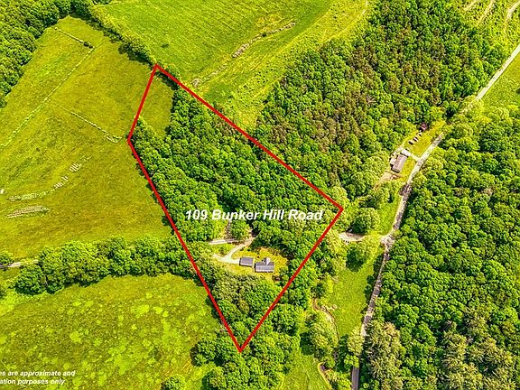 Welcome to 109 Bunker Hill Road. This 3-bed, 2-bath doublewide has recent updates including new heat pump, furnace, hot water tank, updated bathroom, new flooring, gutters with leaf guard and large front porch to enjoy the views! Nicely sized kitchen with eat-in area and new kitchen appliances and laundry room with washer/dryer will remain. Enjoy this 5.7 private wooded setting with high speed Spectrum internet. Newer 24x36 garage and metal roof. Bonus water tap across street comes with property. Septic recently pumped and paperwork for verified 8 tie-down anchors and straps per HUD guidelines for structural inspection. A must see - this one won't last!