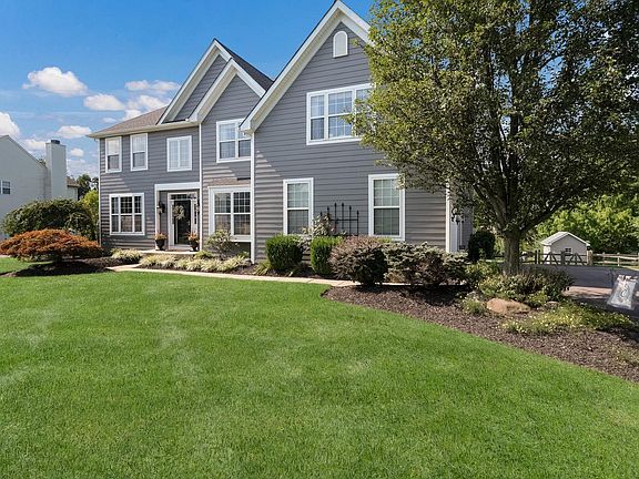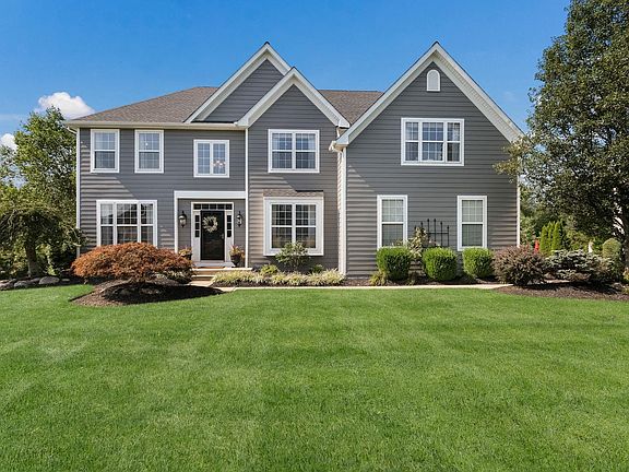 Welcome to this meticulously maintained and tastefully decorated home! This is an immaculate 4 bedroom, 2 full & 2 half bath Colonial home, which beams with pride of ownership! Enter by way of the 2 story foyer with a turned staircase and gleaming hardwood floors that are also throughout the entire first level. The foyer opens to the formal sunlit living room, with crown molding. The beautiful dining room boasts a window seat and custom moldings. The stunning gourmet kitchen, includes granite counter tops, stainless appliances, double wall ovens, a cooktop and extra large island. The breakfast room has slider doors that open to a large covered Trex deck that overlooks the peaceful backyard. The expansive two story family room has a wall of windows, allowing for sun drenched views of the inviting pool. There is a gas fireplace and a second staircase. This spacious room is perfect for large gatherings. A first floor study/office and powder room complete the first floor. The Upstairs hallway has hardwood floors and a balcony overlooking both the foyer and the family room. Double doors lead to the grand master suite, with a tray ceiling , hardwood floors, two generously sized walk in closets, separate sitting room, and a stunning spa like master bath. Three additional bedrooms, a laundry room , and another updated bath complete the second floor. The finished basement is a must see, with several recreational areas and a new powder room. There are slider doors to walk out to the paved patio, which leads to the gorgeous backyard. This private retreat has a second patio with a fire pit and a serene in-ground pool, with plenty of lounging space for entertaining. The yard has a new shed, split-rail fence and backs to a beautiful walking path. This home is surrounded by mature trees and extensive manicured landscaping. There is a 2 car side entry garage, with an extended driveway. New upgrades include: New roof: July 2020, New Siding March 2019, New Pool: March 2019, New Shed March 2019, New Wood Floors throughout home: March 2019 New Powder Room in Basement March 2019, New Carpeting in Basement January 2020, Master Bath Remodel: June 2017. All of this and a rare opportunity to live in the highly sought after community, of Barrington Estates! This is truly a lovely home, to call your own! Seller is related to the listing agent.