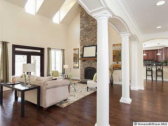 This home highlights rolling views of Jersey horse country. With custom millwork accentuating large rooms overlooking a pool and landscaped grounds, this high-end home befits its upscale Cream Ridge location bordering Gamblers Ridge Golf Club. Everything is complete, from the paver driveway and carriage-style 3-car garage to the detailed coffered ceilings and deep crown molding.