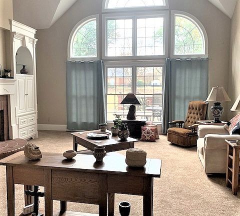 - Bookcases, Built-in Features, Tray Ceiling(s), Ceiling Fan(s), Dual Sinks, Entrance Foyer, Fireplace, High Ceilings, Jetted Tub, Bath in Primary Bedroom, Main Level Primary, Pull Down Attic Stairs, Permanent Attic Stairs, Smooth Ceilings, Solid Surface Counters, Separate Shower, Cable TV, Vaulted Ceiling(s), Walk-In Closet(s), Walk-In Shower, Window Treatments