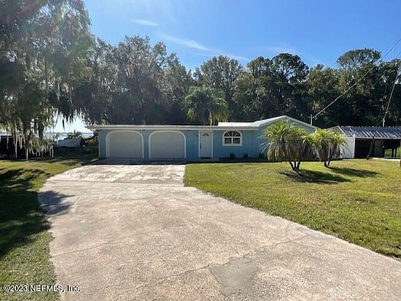 If you are looking a place for relaxation & recreation, then this might be the perfect place for you! This waterfront retreat on 1.44 acres with private basin offers an escape from everyday stress. Located in what is known as ''Bass Capital of the World'' where you can enjoy freshwater fishing & boating. Crescent Lake is a 15,900-acre lake that connects to St. Johns River, via Dunn's creek. Relax while watching the sunset or local wildlife. Recent renovations give this 3 BR,, 2BA home a bright & modern look. The kitchen has new cabinets, appliances & lighting. Bathrooms have been totally renovated featuring new tile showers. Upgrades include new septic system & metal roof. Large family room is perfect for entertaining or as a home office. Screen porch is perfect for outside gatherings Oversized double garage offers plenty of storage. There is an additional lot located across the street that is included with this property offering more space for outdoor recreation.
