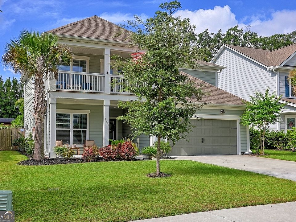 Welcome home to this charming 3 bed, 2.5 bath in the peaceful Norwood Chase community. Enjoy Lowcountry breezes from the inviting front porch or upstairs balcony. Inside, the bright open floor plan offers a spacious living area plus a separate den/office. The gourmet kitchen features quartz counters, gas cooktop, built-in oven & microwave, large island, and walk-in pantry with extra storage. Upstairs, a versatile loft opens to the balcony, while the primary suite boasts a spa-like bath with walk-in shower and custom closet. The fully fenced backyard with screened patio is perfect for outdoor dining or relaxing in privacy. Extras include gutters, tankless water heater, shed, upgraded fixtures, matte black hardware, door blinds, and a security system. Schedule your showing today!
