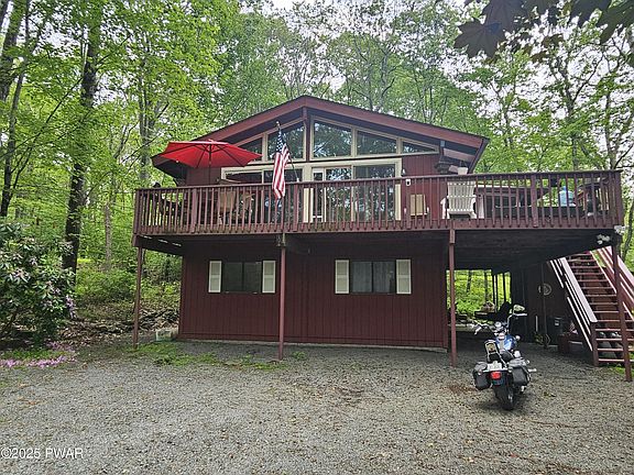 Welcome to Your Happy Place in the Poconos!! Located in the Well Known Amenity Filled Community of Hemlock Farms. This Well Maintained 3 Bedroom 2 Bath Home sits on a 0.9 acre lot and Features Vaulted Ceilings, Open Concept Living Room / Dining Room Combo with Wood Beams, Wood Floors, Sliding Doors and Windows Galore to Let the Sunshine in and highlight the ambiance one would expect in a Country Home add in a Beautiful Brick Fireplace to Keep you Warm on those chilly days. Include a Workable Kitchen with Island equipped and able to handle a Quick Bite or Prepare those Holiday Meals, Walk out the Kitchen Door into The Large Screened in Porch to Enjoy Your Morning Cup of Whatever Warms Your Heart or to Enjoy the Fresh Air Outdoors without the Bugs. The Main floor features a Generous Primary Bedroom with Primary Bath for those seeking Single Level Living. Venture down to the Lower Level where you will Find 2 more Nice Sized Bedrooms and Bonus Room ready for Family, Guests or Office Space. Also a Large Foyer/Mud Room Room with propane heater, as well a 2nd Full Bath and Laundry Room to complete the Indoor Space. The Outdoor Enthusiast will Enjoy the Wrap Around Deck, Screened in Porch and Covered Seating Area with a Built in Workshop/ Shed as well the Privacy the Lot Offers making the Outdoor Options Special whether your Relaxing or Entertaining Guests. Throw in all the Great Amenities the Community as well the Local Area offers and All the Commuting Options Available. You can Understand Why This Will Be Your Happy Place and Home. Don't wait, Schedule Your Showing Today