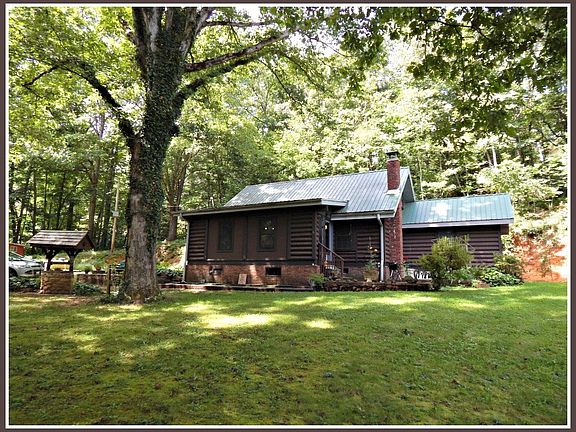 If you love Rustic Log cabins and lots of Character this may be the property for you. With one Acre of land, 2 bedrooms on the main level with a full bath. Old hardwood floors and vinyl in the bath. Enclosed sun porch, laminate floors with a gas fireplace and washer & dryer area. Finished Attic for lots of storage and an office area that used to be used as a bedroom. Private Well is only approx. 2 years new, chimney has been re-flued, newer wood burning stove for the living room, open living room & kitchen and dining area. Old storage building that the original owner built for children's play house and storage. Creek for the grand kids to play in. The creek runs along side of the play house and has an old fireplace inside. There is a well pump house and garden room in the back of it. Small open workshop right next to it. Very close to town, no city taxes, paved to the shared gravel driveway and private setting. Mature landscaping, big shady oak trees & fruit trees and abundance of flowers. Don't miss out on this one, Lots of character here!