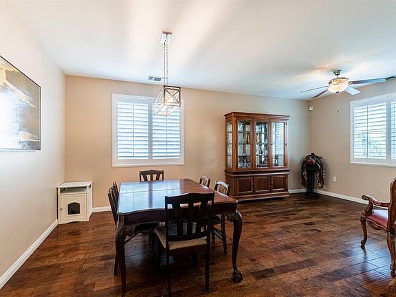 This beauty is a remarkable full 6 bedroom home with a formal living and dining area, open spacious floor design, breakfast bar, eat in kitchen, recently painted kitchen cabinets and hardwood floors. Downstairs features 2 bedrooms and a full bathroom, upstairs has 4 bedrooms and 2 full bathrooms. Master is huge with a sizable walk in closet boasting shelving and built in cabinets. Master bath features dual vanity and separate shower and tub. This home also has plantation shutters, a beautiful pool, lovely patio, a separate hot tub and owned solar! Home is turnkey and ready for new owners to enjoy all the space this home has to offer.