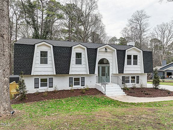 A Rare and Immaculate find! This beautifully renovated split-level home is a true gem, boasting modern interiors while maintaining its classic charm. Nestled on a .76-acre landscaped lot, this home offers curb appeal and a thoughtfully designed layout perfect for both entertaining and everyday living. The upper level welcomes you with a bright and open Living Room, seamlessly flowing into a stylish eat-in Kitchen featuring brand-new gray cabinetry, Quartz counters, SS appliances, a sleek white tile backsplash, and under-cabinet lighting. Sliding doors lead to a spacious deck (permitted addition), perfect for outdoor gatherings. The massive Primary Suite impresses with two closets, including a custom walk-in closet, private balcony access, and a gorgeous en-suite bath with stylish fixtures, a dual gray vanity, and a spacious white-tiled walk-in shower. An additional upper-level bedroom is conveniently located near the updated hall bath. The lower level boasts a large Family Room with a distinctive ceiling and a white brick accent wall surrounding a cozy wood-burning fireplace—the perfect focal point. A sliding door leads to a patio under the deck, extending your entertainment space. Additional features include a mudroom with a custom drop zone and sink, a home Office with sliding door access to a small platform deck, and two additional bedrooms that share a modern full bath. Other notable features include durable LVP flooring throughout most living areas and a highly sought-after Raleigh location with easy access to I-540, shopping, dining, and entertainment.