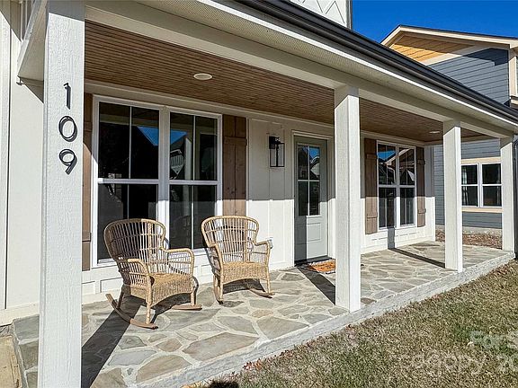 Like NEW home WALKABLE to downtown Black Mountain and mountain VIEWS. Custom built ranch home lived in less than 2 years with high quality workmanship, designer finishes with 2 bedrooms & 2 full baths. The owners en suite has 2 sinks with lots of storage & a large shower. Home has an open floor plan with a huge living, dining, & kitchen area, perfect for entertaining and large gatherings. Granite counters in kitchen & baths, high end LVP flooring, designer lighting, gas fireplace, 2 covered porches in the welcoming and quiet Tudor Croft community. Tons of natural light, great views, near Lake Tomahawk and only 10 miles to Asheville. The Tudor Croft neighborhood offers low-maintenance yards and minimal HOA fees (just $15/month), amazing views, underground utilities, including natural gas, fiber 1g internet available.