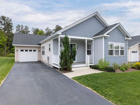 Welcome to 109 Chickadee Lane in the charming South Shore Village. This beautifully designed Breakers Plan model, built in 2018, combines comfort with style in a free-standing condo that feels like home but offers the ease of condo living. Step inside to a welcoming open floor plan, where the spacious living room flows into a dining area and a gourmet kitchen equipped with high-end appliances, a peninsula island, and elegant cabinetry. Another dining/living area adds versatility to this inviting layout. The condo features a generous primary bedroom suite with a tiled bathroom and a second bedroom with access to another upgraded full bath. Conveniently located, the mudroom with laundry connects to the garage, serving as a practical side entrance. The large full basement, with high ceilings and garage-accessible egress, offers potential for future expansion—think a movie room or entertainment space. Enjoy hassle-free parking with your private garage and additional guest spaces. This pet-friendly home boasts a private deck, perfect for unwinding and entertaining, overlooking a serene backdrop of woods and grass—a truly private setting. South Shore Village complex offers 1st rate amenities: a community center, indoor&outdoor saltwater pools, custom-designed Orca bar, state of the art fitness center, walking paths, and a 9 hole golf course. Located in beautiful South Kingstown with easy access to area beaches, restaurants & shopping.