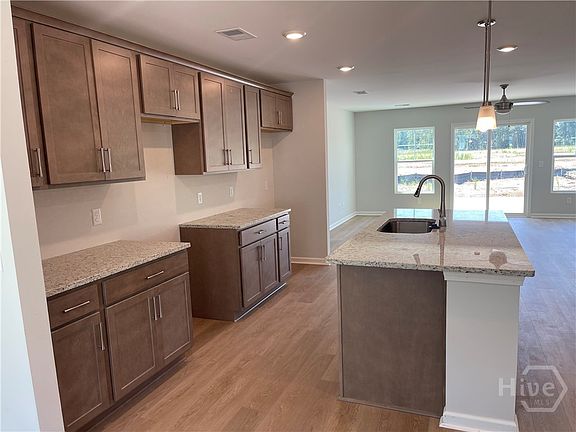 HOME IS MOVE IN READY!! Savannah's most trusted local builder is proud to offer our Blue Ridge TR plan. You have to check out the lot for this home. Amazing. This home also has some excellent features and upgrades including our upgraded front look "Elevation F" with brick front at Front porch area, large 12' x 18' back patio, 5' shower with glass door in primary bathroom, garage door opener with 2 remotes, pendant lights above kitchen island, large single kitchen sink, click plank wood look flooring in main living area and wet areas, upgraded level 2 cabinets throughout, granite tops in Kitchen, quartz tops in both bathrooms, ADT security package, Fully Sodded and Irrigated yard with auto timer. Pictures, features, and selections shown are for illustration purposes and may vary from the home built. All builder incentives applied.