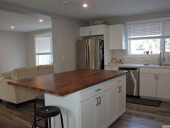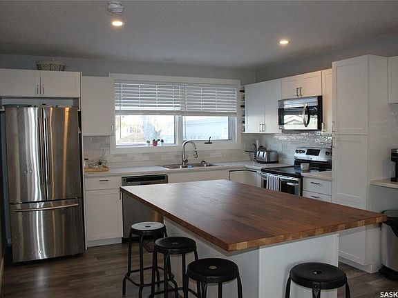 Looking for a fabulous home situated on a quiet street in Whitmore Park within walking distance to Grant Road School, close to parks, shopping, & much more? Welcome to 109 Chisholm Road! This attractive two-storey home is 1378 sq ft & is positioned on a huge 6102 sq ft lot. A renovated 3 bedroom, 2 bathroom home that is move-in ready! The kitchen is the heart of any home & you will be amazed at the light that enters this fantastic space as well as the modern features & practicality of design. A custom-built island adds functionality to the space & is complimented by an abundance of cabinetry, drawers, counters & SS appliances. A large living room with a gorgeous wood fireplace is a focal point from the large east-facing newer windows that catch so much sunshine & creates a warm ambiance & showcases vinyl plank flooring! Completing the main floor is a 2-pc bath, storage closet off the kitchen, & side door to the deck/yard. The main floor area is perfect for entertaining, raising a family, & being able to watch the kids in the yard. The 2ndr floor is fully renovated & incl 3 good-sized bedrooms with newer carpeting & an updated full bath. The primary bedroom is exceptionally comfortable & spacious with a wall of built-in cabinets plus another sitting area (with a 2nd closet). This area is modern, bright, & perfect for a nursery, home office, or a quiet sitting area. The primary bedroom easily accommodates a king-sized bed. The basement is open & braced (with the engineer's report) to develop for additional living space. (Laundry area is in the basement & water heater/softener are rented) The fully fenced mature yard is well maintained & features a wrap-around deck, an adorable playhouse (or shed), a patio area, firepit area, & provides relaxation & quiet enjoyment. The garage is a tandem garage & fits 2 vehicles plus storage areas! The home has updated windows, updated shingles, & more. 109 Chisholm Rd is perfect - the location is amazing! Please call to learn more!