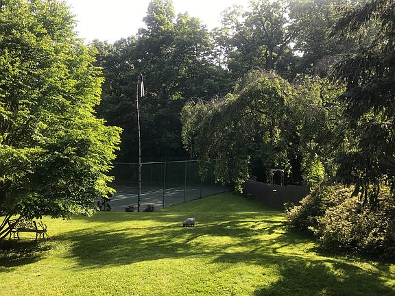 Stylish Bala Cynwyd 5 bedroom, 4 bath home on a secluded 3/4 acre. Enter a hallway with coat closet that opens to a sweeping, sun-filled living room with a wood burning fireplace, den, and 2 story addition dining room and kitchen by the renowned architect, David Beck. Massive windows overlook a Japanese garden and beautiful tennis court that has the privacy of woods on one side. Two master bedrooms and two completely new bathrooms on the first floor. The second floor has three more bedrooms and new bathroom plus all new windows and a storage room and cedar closet. A finished basement has an art studio, storage room, full laundry room, bathroom and two car attached garage with an electric garage door. A circular driveway adds to the ease of this home. The house has a new air conditioner