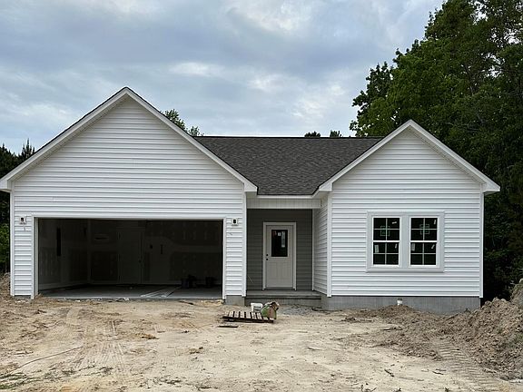 Welcome to the lovely Libby, a beautiful and elegant floor plan with almost 1200 square feet of unadorned living space. This perfectly pristine palette offers clean lines and a straightforward and pretty layout. Enter through the front covered porch to find two bedrooms to the right and a full hall bath. Further along on the same side is the oversized primary bedroom with a large ensuite and walk-in closet with ample space. To the left of the bedrooms is a large centralized great room with a door to a second covered patio. Open to the great room is a dining room and the kitchen to the far left with a conveniently located laundry room.