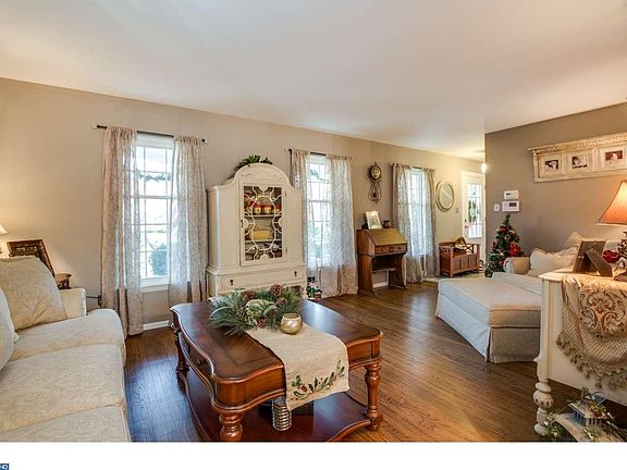 Beautifully decorated and meticulously maintained home absolutely move in ready. This model has more square footage compared to most in the neighborhood and has a wonderful floor plan with the kitchen open to the family room. There is so much about this warm and inviting home to please even the fussiest Buyers. The attention to detail is fabulous. A new front door leads you to exposed hardwoods throughout that have been recently refinished and stained a rich chestnut color. The entire interior has been painted in lovely designer colors. Updated kitchen features new tile floor, gas cooking, upgraded lighting, and new countertops. The kitchen opens to the family room with new neutral carpeting installed in the fall and a whitewashed brick fireplace and beautiful beams. Off the family room is a large room that is currently the laundry/play room. It could be an office or game room or easily be converted back to a garage. The powder room was just redone. The master bedroom is extremely spacious. There is a large dressing area, lots of closet space and an updated master bath with glass shower. Three spacious bedrooms and a large full bath complete the upstairs. All new windows (2014)with transferable warranty , upgraded 200 amp electric service, new 75 gallon hot water heater and a high efficiency heater (2010). The backyard is awesome. A large, level yard with a beautiful maple tree features a new large paver patio decorated with string lights. New walkways, new shed, and new low maintenance fence are all useful upgrades. It's perfect for outdoor entertaining. Close to shopping, restaurants, and easy commute to Philadelphia. All offers subject to approval of Relocation Company.