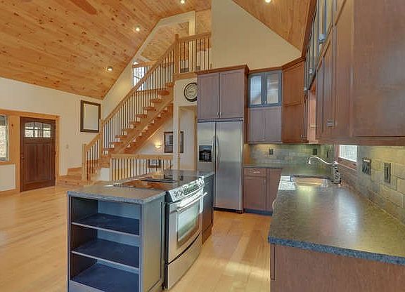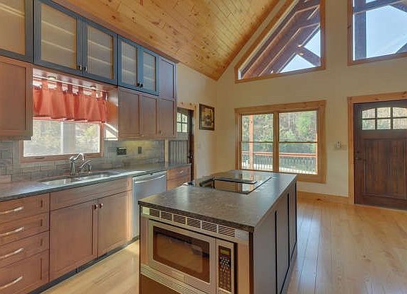 Rich detail in this craftsman-style 3/3 Chalet w/FINISHED basement. Two toned KIT cab w/extra upper glass front cabinets provide a great deal of storage & emphasizes soaring ceilings. Two tone repeated on dbl mantel of floor to ceiling stone fp. MSTR has dbl vanity, garden tub & walk-in shower. ALL baths have HEATED floors! Pretty turned wrought iron balusters for texture & contrast to the pine ceiling & trim throughout the home and same on the open porch, covered porch & screened porch. Loft has a BA w/lg walk-in tile shower. H20 filtration. Fin basement is carpeted w/ large living space & BA. Wood siding, stone pillars & wood beams make a stunning first impression!