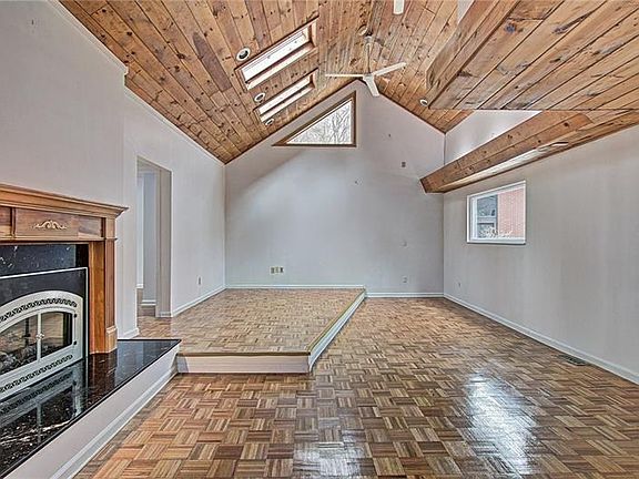 Secluded home in Bradford Estates sits less than ten minutes from McKnight Rd. Enjoy an abundance of fine dining options close by or eat in a kitchen with skylights overhead. Gas stove & fireplace are the perfect remedy for cold winters. Covered porch provides the idyllic place for grilling out back. Enjoy your heated, 9-foot in-ground pool beneath the trees. With this multi-level layout, high ceilings, music stage, private balcony and plush new carpet, the options for entertaining small or large parties are limitless. Owner's suite features a walk-in-closet, private balcony, and deep soaking tub. Three other bedrooms include large closets, skylights and scenic views. Walk up attic provides ample space for storage or a potential bedroom. Newer washer/dryer, refrigerator, dishwasher & new water heater along with renovations to the garage for your convenience. Visionary layout in the style of an architectural legend offers a timeless beauty while being close to the best of Pittsburgh..