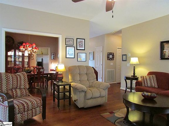 Immaculate 3 bedroom, 2.5 bath, brick patio home located on a cul-de-sac in convenient location in Easley. 9' ceilings on the main level with hardwood floors throughout the living areas. Update Kitchen with silestone counter tops and lots of cabinets. Formal Dining Room. Great Room features a gas log fireplace with built in bookcases on both sides. Enjoy your time outdoors on the screened porch with tiled floor and the deck. Master bedroom is on the main level also. The Master bath has a jetted tub, separate shower and a walk in closet. The other 2 bedrooms and full bath are located on the 2nd level. Tons of storage in the home, including the huge walk in storage on the 2nd level. This community has an HOA that covers lawn maintenance and sprinkler system for your carefree living. Forest Acres school district.