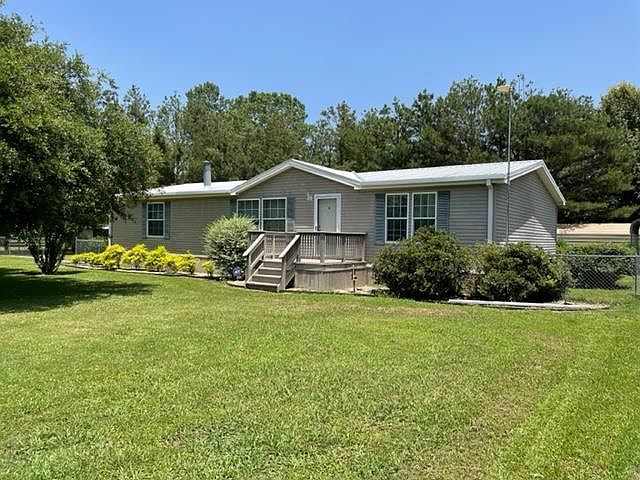 Spacious home on nearly one acre. 2003 model mobile home features large kitchen and den, three nice size bedrooms, large walk-in closet, and two bathrooms, plus, laundry room and enclosed sun porch. Included is a covered parking area and an outdoor storage building.