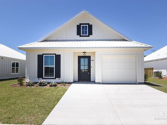 Unmatched, carefree living in a darling Fairhope cottage, custom built by Wachter & Co. Gold Fortified, wind impact rated windows, tankless hot water heater, board & batten exterior, metal roof, 2BR, 2BA, screened porch with single car attached garage. The custom kitchen includes cabinetry to the ceiling (abundant storage), pocket doors to hide appliances, tile backsplash, built-in spice rack, under cabinet lighting. Additional special features include vaulted ceiling with reclaimed wooden beams, designer ceiling fan and light fixtures, custom mini-blinds throughout, keyless entry, bench seat in walk-in shower, custom closets, and a quaint wooden screen door to welcome both you and friends. Luxury Vinyl Plank flooring throughout. Many large windows that welcome natural light. The HOA fee includes lawn care for each home. Buyer to verify all information during due diligence.