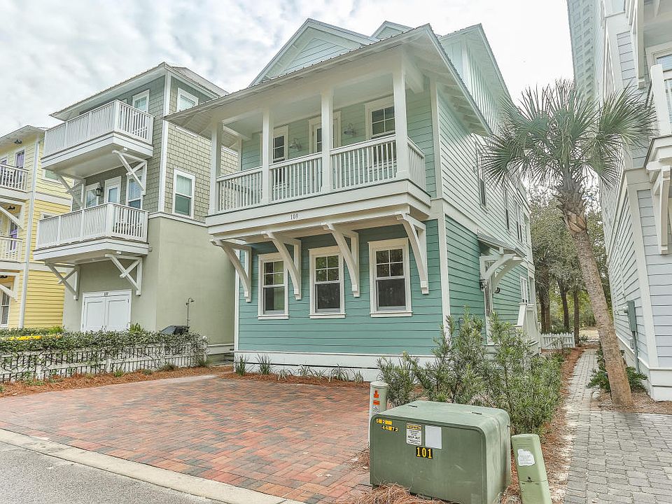 Cottage Ct. is a new construction (2017) built by Chi-Mar Construction. This home offers everything one would expect of a Carillon Beach home. An open floor plan is complemented by features that exude chic beach living. Beautiful pickled hardwood floors, granite counters, stainless steel appliances, shiplap wood-wrapped walls, luxurious bathrooms and spacious porches (4, including one large ground floor screened porch) and rooftop balcony are just the beginning to the long list of impressive upgrades. Backing to a tree lined pedestrian walkway and only a block away from the deeded beach access, enjoy the peacefulness that the gated community of Carillon Beach offers.