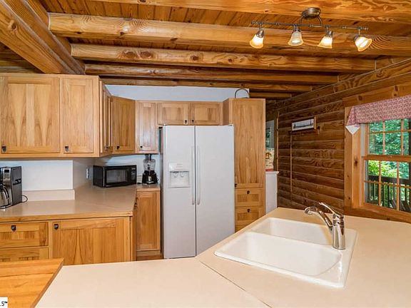 If youâve been craving more peace, serenity, and fun in your life, then set your sights on the charming log cabin home at 109 Cougar Trail. This three bedroom, two and a half bathroom home, located in Riverbluff, will charm your socks off from the moment you pull into the private circular driveway. Whether youâre looking for a vacation property, investment property, or a new place to call home, youâre guaranteed to fall for the many charms of this spacious log home. 2.97 acres There is more than enough room for you to hang a porch swing and add some cozy Adirondack chairs to relax with an evening cocktail. Waiting for you on the other side of the front door is a jaw-dropping great room with sky-high cathedral ceilings, a floor to ceiling stone wood burning fireplace, and luminous hardwood floors. The open floor plan of the main floor opens up into a dining room complete with views, and an entertainerâs kitchen with a breakfast bar. Step through sliding glass doors from the dining room onto the huge back deck where you can spend your mornings sipping coffee and reading the paper while listening to the birds sing. The romantic master suite is also located on the main level which is ideal for giving you that extra privacy from kids and guests. Upstairs, there are two additional bedrooms and a bathroom with tons of space to accommodate the kids and visitors. One thing is for sure, all of you will sleep like babies when it rains, thanks to the new metal roof which is expected to last another 50 years. Need more space to spread out and have some fun during the colder months? In the finished basement with walkout access, there is a gigantic bonus recreation room with a large gas fireplace that can heat the whole house. The sky is the limit when it comes to the possibilities and potential uses for this space! Turn it into a personal movie theater, arcade and game room, man cave, playroom, or transform it into a guest suite. This could also make an ideal in-law suite if needed. The laundry room and two additional large storage spaces with shelving are also located downstairs for your convenience. The true splendor of this home awaits you outside, beginning with the relaxing decks and front porch where you will want to unwind with a glass of wine after a long day of adventures. Donât forget to curl up on the front porch to watch the rain in the warmer months. If you love to fish, hike, hunt, or play on the water, you owe it to yourself to buy this house! With more than two acres of private land and a 4-5 acre lake loaded with fish, you will feel as though you have died and gone to heaven every day that you wake up here. You also have a private dock with electricity where you can tie up a fun paddleboat, go swimming or cast a line when the mood strikes you. Life in Riverbluff is a dream come true. Although you have plenty of privacy at 109 Cougar Trail, the neighbors are all very friendly and always happy to lend a hand or a cup of sugar if you need it. On nights when youâre craving a little more excitement or culture, you can take a short drive to nearby Asheville or Greenville to catch a concert or a show. Of course, the area is flooded with restaurants with cuisines that can satisfy every craving. This home has all you could ever want or need to build a beautiful life in the country! Donât miss your opportunity to call 109 Cougar Trail home, book your private showing today!