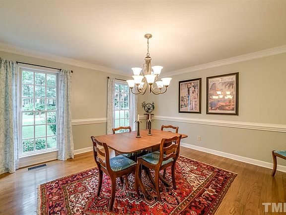 Don't miss this rare opportunity to own this stunning property on a picturesque wooded lot on almost 1/2 Acre! 5 BR/3.5 BA. Completely updated throughout w/updated kitchen/bathrooms/fixtures, dormer windows/trim, New Bronze Gutters, New Roof '15. Large Deck for entertaining. Landscaping & Irrigation. Oversized 2nd floor bonus + finished 3rd floor w/bedroom/bathroom/office. The neighborhood itself is distinctive with pool, tennis courts,walking trails, & proximity to Cary Shopping.