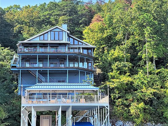 Extraordinaire 4BR, 4.5BA Pickwick Lake Waterfront has one of the finest floorplans on the lake, deep water, gorgeous views for miles, superb quality boat dock, huge sundeck, 2 slips with lifts and floating platform.