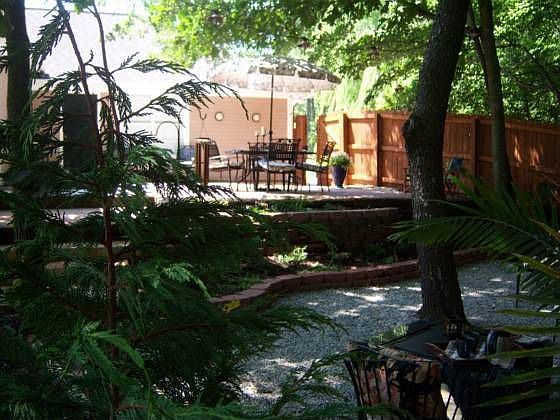 Relax & entertain outside in the beautifully landscaped yard that has shaded, terraced patio areas and a covered porch overlooking the fish pond with 2 waterfalls. Updated kitchen with slate tile floor. Lots of hardwood floors, stacked stone fireplace and secluded master with 2 walk-in closets. Surround sound wired for patios, covered porch & great room, the study overlooks the fish pond and has a stamped concrete floor as does the foyer with it's faux painting that creates architectural detail.