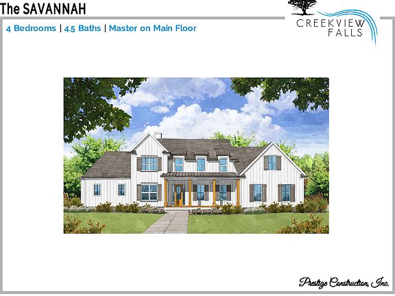 Welcome to luxury living in this stunning modern farmhouse. The Savannah plan is a desirable master on main w/ additional bedroom w/ a full bath on the main level. This home boasts a covered rocking chair front porch, fireside family room opening up to an eat-in kitchen featuring abundant cabinetry are a dream come true. Mud room & drop zone are located off of the 3-car garage. The second level offers two additional bedrooms & a spacious media room. Large, covered rear deck with fireplace overlooking a dreamy backyard retreat. Built by Prestige Construction.