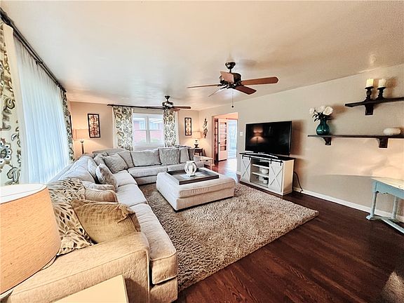 This bright and open multi-level home exudes style and warmth, set in a quiet neighborhood with large backyard backing up to the woods. The spacious living room features a wood-burning fireplace with custom mantel, ample windows, and original hardwood floors. Large eat-in kitchen with island, quartz countertops, and stainless appliances, and opens to the formal dining. The 3-season room is surrounded by glass sliders that take you to the newly built composite deck perfect for entertaining or relaxing. Lower level includes the laundry room with 1/2 bath and a den that would make a great home office or large mud room. Hand-scraped Moroccan walnut floors run throughout the upstairs. Two generous bedrooms with double closets share a full guest bath. The primary suite is bathed in natural light and includes a double closet, ceiling fan, and private 1/2 bath. The walkout basement is just waiting to be finished with your personal touch. Close to 376 and just minutes to downtown Beaver.
