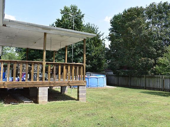 Ranch style home in great location! 3BR 1 BA home on quiet street with fenced backyard and covered patio/deck. Yard has storage shed, aboveground pool that can either stay or go. Outside accessible cellar/basement for shelter from storms. 1 car garage and also 1 car carport and additional parking pad. Roof was replaced approximately 2 years ago.