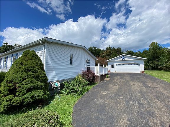 Living room, dining room, kitchen, family room, office, mudroom, bedroom 1, bedroom 2, bedroom 3, bedroom 4 ... this whopping 2200 + square foot gently used manufactured home on 1 peaceful German Township acre (give or take) features a newer kitchen, a large front porch, an even larger covered back deck, an asphalt driveway, tons of closet and storage space and an oversized 2 car garage. All of this one level living is on a block foundation with a partial basement at one end that only has outside access.