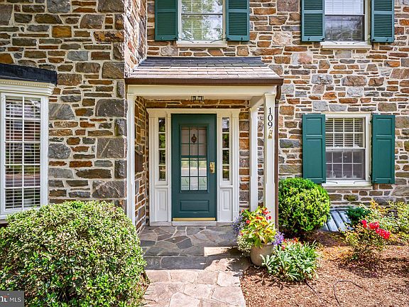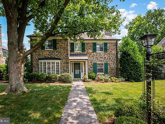 Uncompromising craftsmanship abounds in this impeccably maintained stone colonial sited  on a  one block Homeland street.   The classic  1st floor plan  is enhanced by a thoughtfully renovated kitchen with built-in banquette, spacious dining room with built-in corner cabinet and living room with gas burning fireplace .  A serene screened porch  along the back of the house overlooks a stone patio and  lushly landscaped fenced  backyard.    Detached garage has a new door and open breezeway connecting it to the house.   The 2nd floor offers 3 bedrooms and 2 full bathrooms, including a large primary with a renovated en suite bath.  A finished attic accessed from the primary bedroom has separate HVAC , is a fabulous surprise and offers ample eaves storage in addition to flexible space perfect for an office, craft room or work-out.   The basement is partially finished with LPV flooring and a wet bar - all set for game day!  Truly move-in ready.
