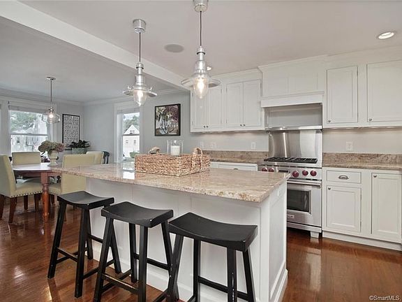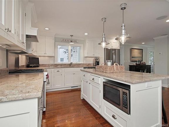 Beach area Cape beautifully expanded & renovated from head to foot with no expense spared. Situated on a large corner lot located 1/2 mile from Fairfield beaches, this 3 bedroom house boasts a 1st floor open concept kitchen, dining room and family room. Gourmet kitchen includes Wolf dual-flame range, granite counter tops & custom cabinetry. Expanded family room opens to rear deck through french doors & boasts new heat-producing gas fireplace. Surround sound system throughout 1st floor & extending to outside deck area. Partially finished basement includes large bonus room/home office, with custom built-in cabinets, 1/2 bath, wine bar and additional storage closets. Pantry area with storage, 2nd refrigerator and microwave make for easy entertaining. Home workshop area of basement includes work tables and built-in floor to ceiling storage shelves. Fenced in backyard surrounds the new deck, which extends the full width of house, with areas for grilling, dining & entertaining. An outdoor shower is adjacent to the blue stone patio, which leads from the garage to the new side entryway. Entry & mudroom includes the laundry area, half bath with large soaking sink and deep storage closet. New siding, new roof (2017), custom designed blue stone front portico with CT stone & Belgian block walkway. New car and 1/2 garage includes floor to ceiling storage shelves in rear. Professionally landscaped yard with separate vegetable garden area. Walk to town, train, park, tennis & beaches! Renovations & Improvements: New open concept kitchen, dining and family room Back door entrance/mudroom added, including laundry, half bath and storage French pocket door between mudroom and kitchen Custom kitchen with Wolf dual-flame range, granite countertops, custom-built cabinets Enlarged family room with heat-producing gas fireplace and french doors to rear deck Surround sound on all of first floor and on rear deck Fenced in yard with multiple gate access, privacy fence Belgian block ending on driveway Rear deck extending full width of house, with areas for grilling, dining and entertaining Outdoor shower Custom designed blue stone front portico with CT stone and Belgian block walkway Partially finished basement home office with half-bath, wine bar, pantry, and additional storage Pantry area in finished basement includes storage, 2nd refrigerator and microwave Basement workshop area with additional storage shelves Custom wood blinds throughout Refinished hardwood floors throughout New car and 1/2 garage with floor to ceiling storage shelves New roof (2017) New siding (2010)