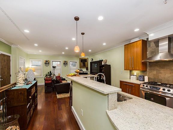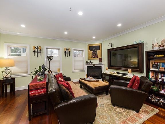 Sprawling 3BR/ 2 bath with 1831 sqft of living on 2 levels with an ideal open layout and tons of natural light. This home features Brazilian Cherry hardwood floors throughout, gas fireplace, flexible floor plan including L-shaped kitchen/living room/dining room. The chef's kitchen offers cherry cabinetry, gas cooking, large vented stove hood, granite counters, breakfast island, a ton of custom cabinets & SS appliances! front facing living room with Gas fireplace. Oversized master suite offers sitting area with a second fireplace, huge walk-in closet with custom built shelving and en-suite bath with river rock shower floor and rain fall shower.. 2 large guest bedrooms with ample closet space and built in cabinetry. Extra storage room in lower level, central A/C, and in-unit laundry room with extra pantry space and second fridge and Nest thermostats. Rear deck leading directly out to deeded parking space. Close to transportation, shopping and restaurants