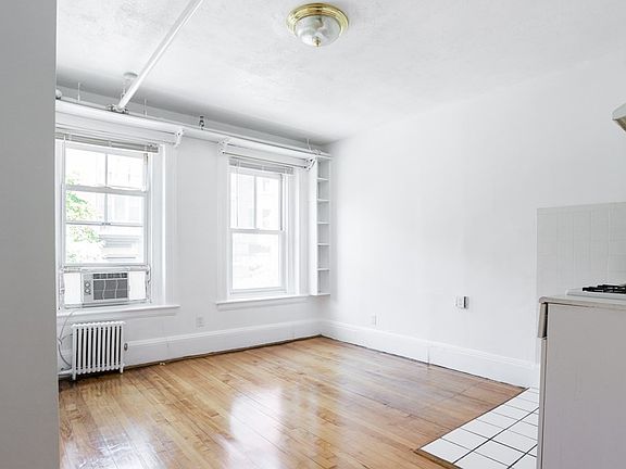 South End/Back Bay Line.. Dartmouth St steps to Back Bay T Station/Copley... Ideal location upper level front-facing studio in owner occupied brownstone features an efficient layout, hardwood floors, kitchen with island and full refrigerator and gas stove, tiled bathroom, good closet space. Common laundry and common patio. Heat, hot water, electric and window AC included! One Month Broker fee. No pets. Available 2/1 for $1850.