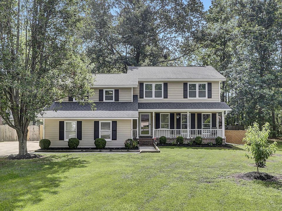 LOCATION! LOCATION! LOCATION! This house is close to everything! Beautiful traditional house located in a quiet cul-de-sac with community swimming pool, tennis, golf, jog/walk trials and a lake. This split level home boasts cathedral vaulted ceilings, beautiful flooring throughout, and a long driveway w a 2 car attached garage. Newer carpet, kitchen newly renovated, 30-yr shingles put in 2016, newer windows upstairs with window treatments. Spacious fenced back yard, 14' x 21' screened-in porch, a second 8' x 8' screened-in porch and a freshly stained back deck makes this backyard oasis great for entertaining and enjoying the fresh air. Shed for extra storage. Come check out this beauty today before it's off the market!