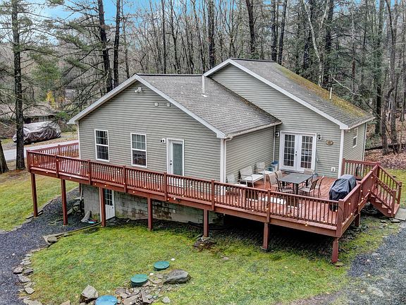 Absolutely gorgeous, newly renovated 5 bedroom, 3 bathroom home NOT IN A COMMUNITY, and just minutes from Lake Wallenpaupack, Hawley, and Interstate 84! Upon entering 109 Dirk Road, you're greeted with a beautiful open living/dining/kitchen area with stainless steel appliances, 3 bedrooms, 2 full baths (1 master suite), and walk out access to a huge wrap around front and rear decks. The fully finished lower level contains 2 more bedrooms, a full bathroom, and a spacious family room. The home also features energy efficient mini split systems for heating and cooling, and sits on an acre of land. Park all the toys under the covered backyard pavilion and enjoy everything that Lake Wallenpaupack and Pocono Mountains has to offer!