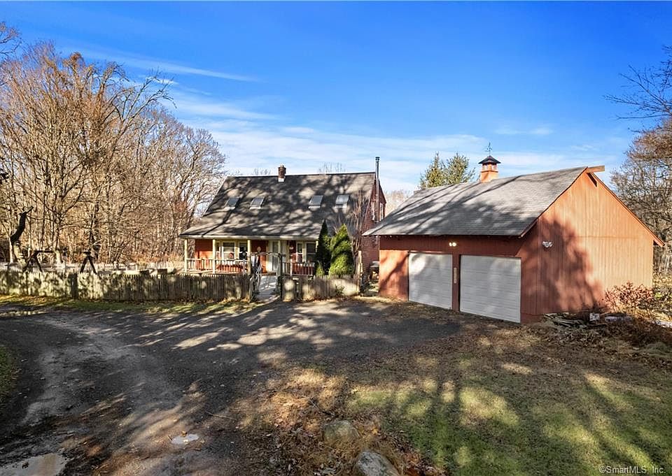 LOCATION LOCATION LOCATION! Welcome home to this large custom built cape in the heart of Guilford. This home features four bedrooms with a large primary bedroom suite on the first floor and an expansive open floor plan. The kitchen features updated stainless appliances and a large butler pantry attached! The back door leads to a wrap around porch with views of the stunning spring fed pond in the back yard. Go fishing or kayaking right in your back yard! The second pond is even big enough for a small motor boat! The unfinished walk out basement offers huge expansion potential. Very private lot walking distance from nut plains park and town dog park. There is a two car detached garage that offers additional storage and loft space with even more potential. This home also offers a whole house generator hook up and generator that can be included in the sale.