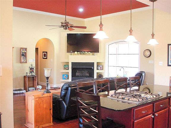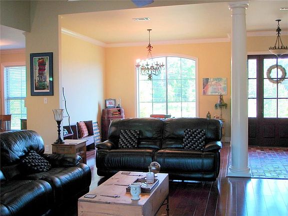 Almost in the country! Home sits at top of hill in a quiet neighborhood. In excellent condition & move-in-ready! Features high ceilings with cathedral ceilings in living room, all bedrooms have walk-in closets, marble countertops in kitchen with gas cooktop, and refrigerator remains. Lots of wood floors. landscaped yard.