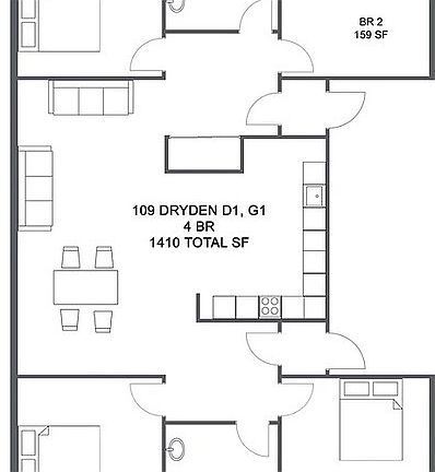 Available for the 26/27 academic year. This is a four bedroom apartment. The living room has six large west-facing windows that allow for expansive views of downtown Ithaca. Each living room has two couches, a coffee table, an air conditioner, and a dining table set. The kitchen is open to the common area, it has a lovely stone tile floor, a dishwasher, a microwave, and ample cabinets and counter space. Each wing in the apartment has two large bedrooms and a bathroom, making two bathrooms to share among four residents. The bathrooms each have a tub with a sliding-glass mirrored door. The bathroom has plenty of storage space and stone-tiled floors. The bedrooms have a large window, air conditioning, a double bed, a desk set, a dresser, and lovely double-sized closet. This is one of the largest four bedroom apartments in collegetown. 24/7 recorded security camera suite from ADT.